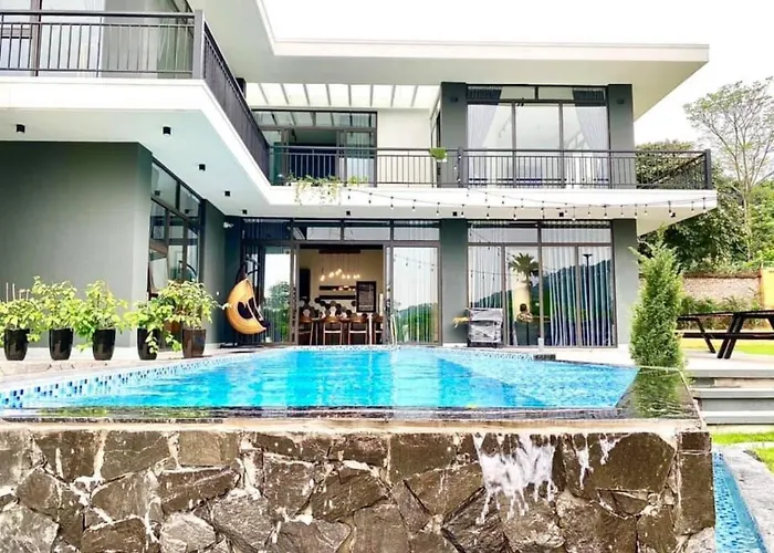This property includes a dining place and an outdoor dining area with a microwave oven, an electric kettle, and a refrigerator. The distance to Noi Bai International airport is about 70 km. The villa has a sunny patio to relax on after a busy day, along with a swimming pool.